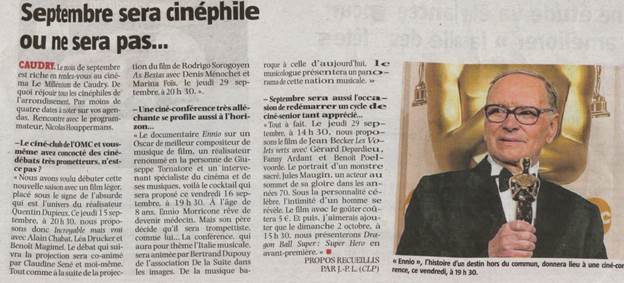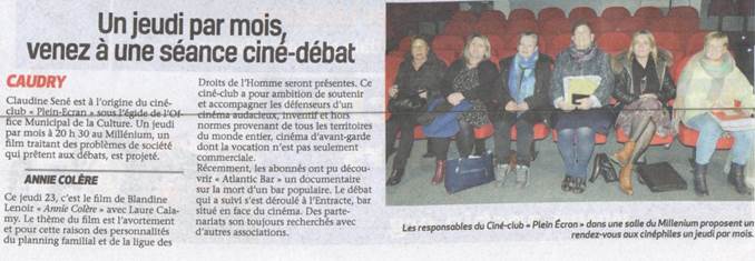 Culturels. Le Cinéma Millenum pour le Ciné club. Il peut s'agir d'expositions