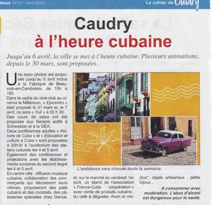 CAUDRY À L’HEURE CUBAINE du 23 mars au 07 avril