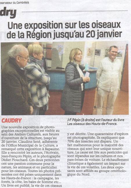 de Caudry l’exposition visible durant une semaine du 30-03 au 06-04 ( accrochage le mardi 29-03