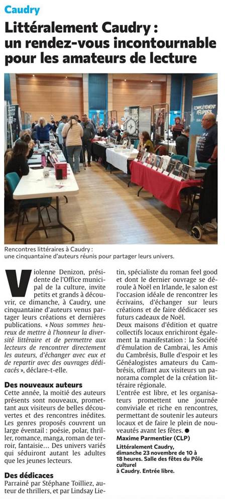 La quatrième édition de "Littéralement Caudry : le Salon du Livre et des Auteurs" se tenait ce dimanche 23 novembre 2025 à la salle des fêtes de Caudry.